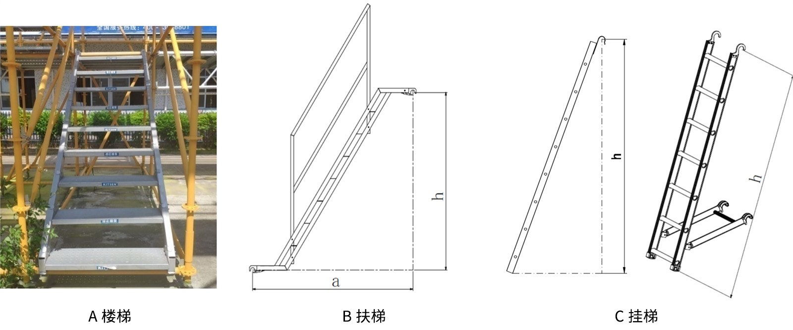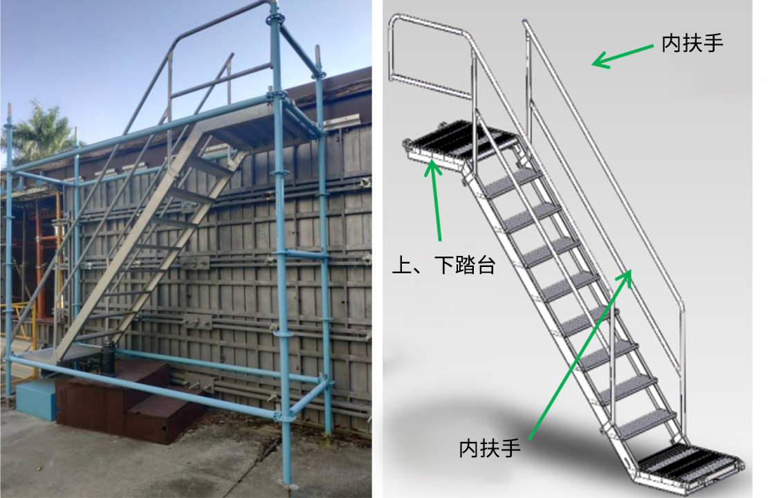 裝配在橫桿上,可供施工人員上下通行。