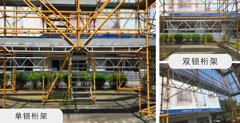 由上下弦桿焊接組成的與立桿扣件的水平加強桿件,用于腳手架跨空位置。 作用:(施工)人行、車通道、飛機、輪船、設(shè)備維修等等。