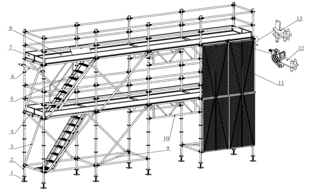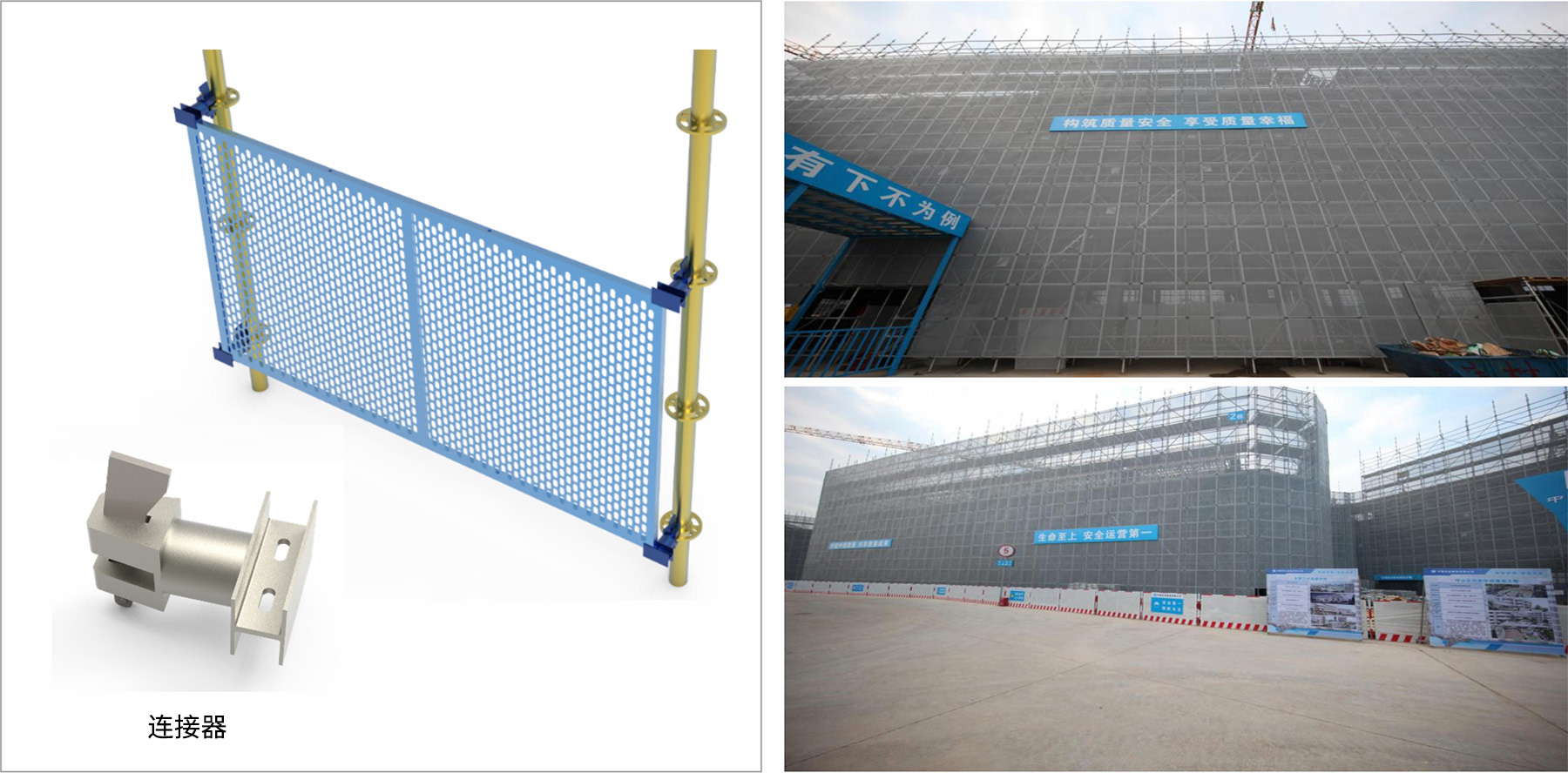 通過與立桿、水平桿的連接件安裝在腳手架外圍的防護(hù)裝置。