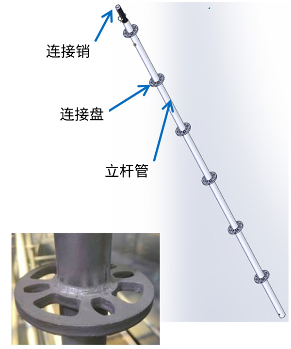 ③ 連接銷固定于立桿一端,用于立桿豎向接長的內(nèi)插管。