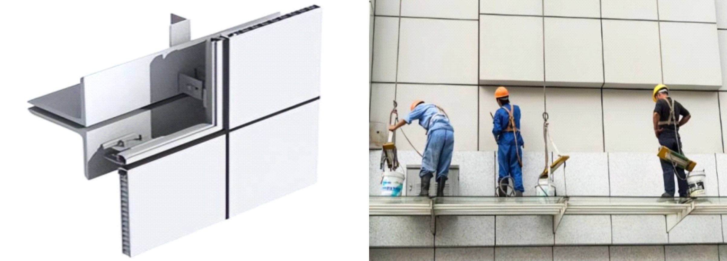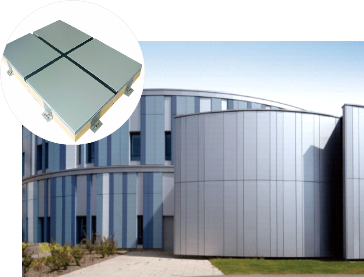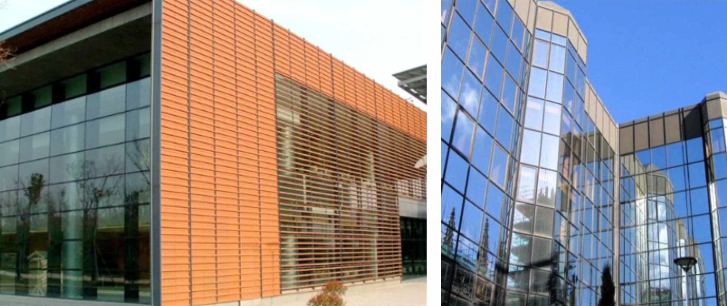 支架是幕墻承重的結(jié)構(gòu)組成部分,一般有鋼制和鋁合金制兩種,支架的品質(zhì)直接影響到鋁板幕墻的整體質(zhì)量和安全性。 | 鋁板幕墻一般采用鋁合金板和彩鋼板作為面板材料,另外也有玻璃、石材等面板材料。面板的種類直接影響到鋁板幕墻的外觀和色彩。 |